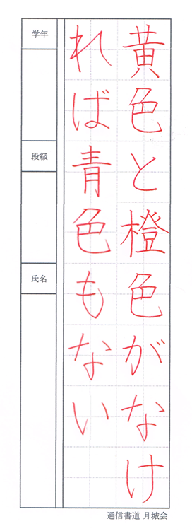 BLOG 月別課題 お知らせ 2025.12.19 【令和7年度1月分 月別課題】 一般楷書「異国情緒」 一般行書「異国情緒」 一般草書「異国情緒」 実用書法「雀百まで踊り忘れず」 一般ボールペン部「黄色と橙色がなければ青色もない」 中学生1~3年生「福袋の中」 小学5~6年生「初天神」 小学3~4年生「お正月」 小学1~2年生「ほん」 ブログ一覧